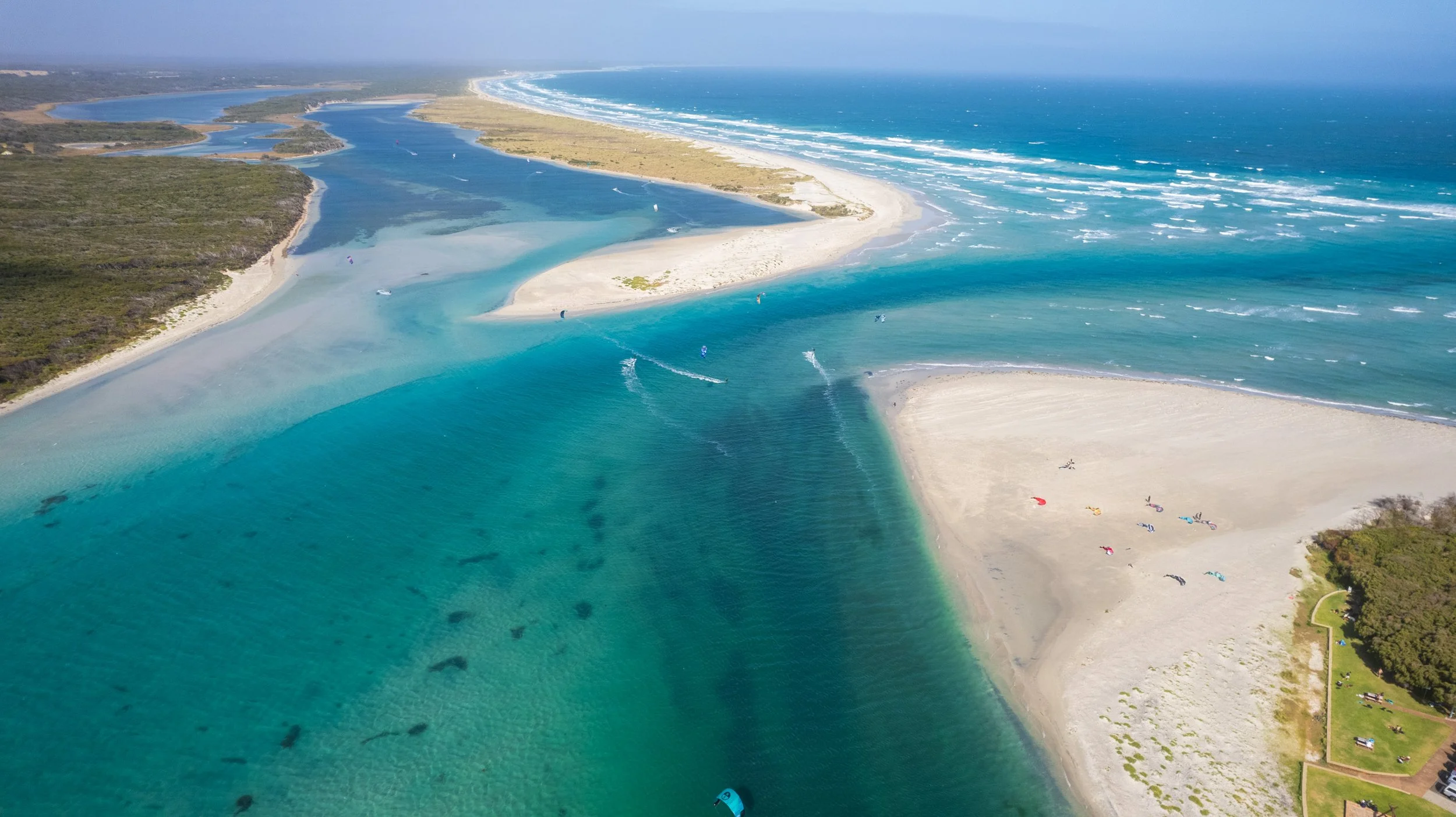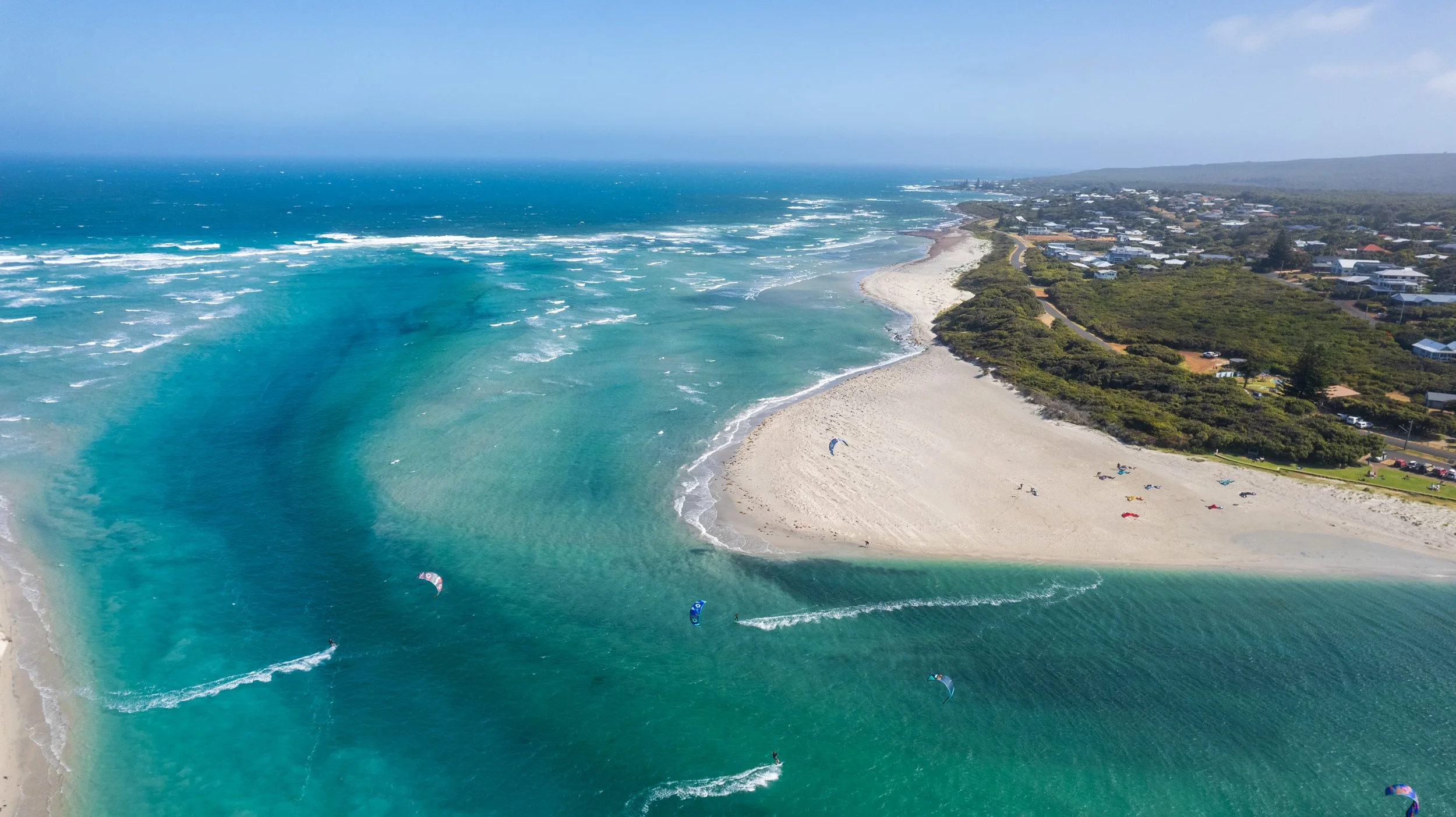 There’s plenty of space along the inlet, so even on a busy day you’ll find your own little pocket to rig and ride. Butter-flat water on the estuary side makes it ideal for relaxed cruising, dialling in your foil, or sharing the stoke with mates. It's beginner-friendly but still fun enough for seasoned riders to throw down tricks or just drift aimlessly in the wind.