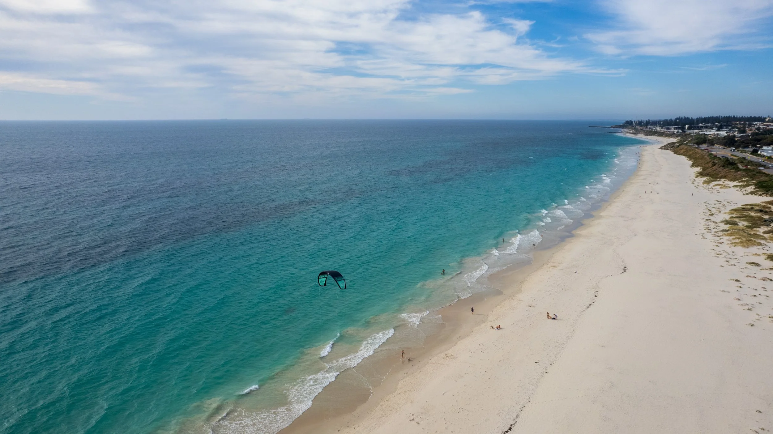 Welcome to Leighton, Perth’s urban kite hub and a summer classic. Just north of Fremantle, this wide open beach is your go-to for reliable afternoon seabreezes, especially when the Fremantle Doctor kicks in from the SW — cross-onshore and smooth as silk.